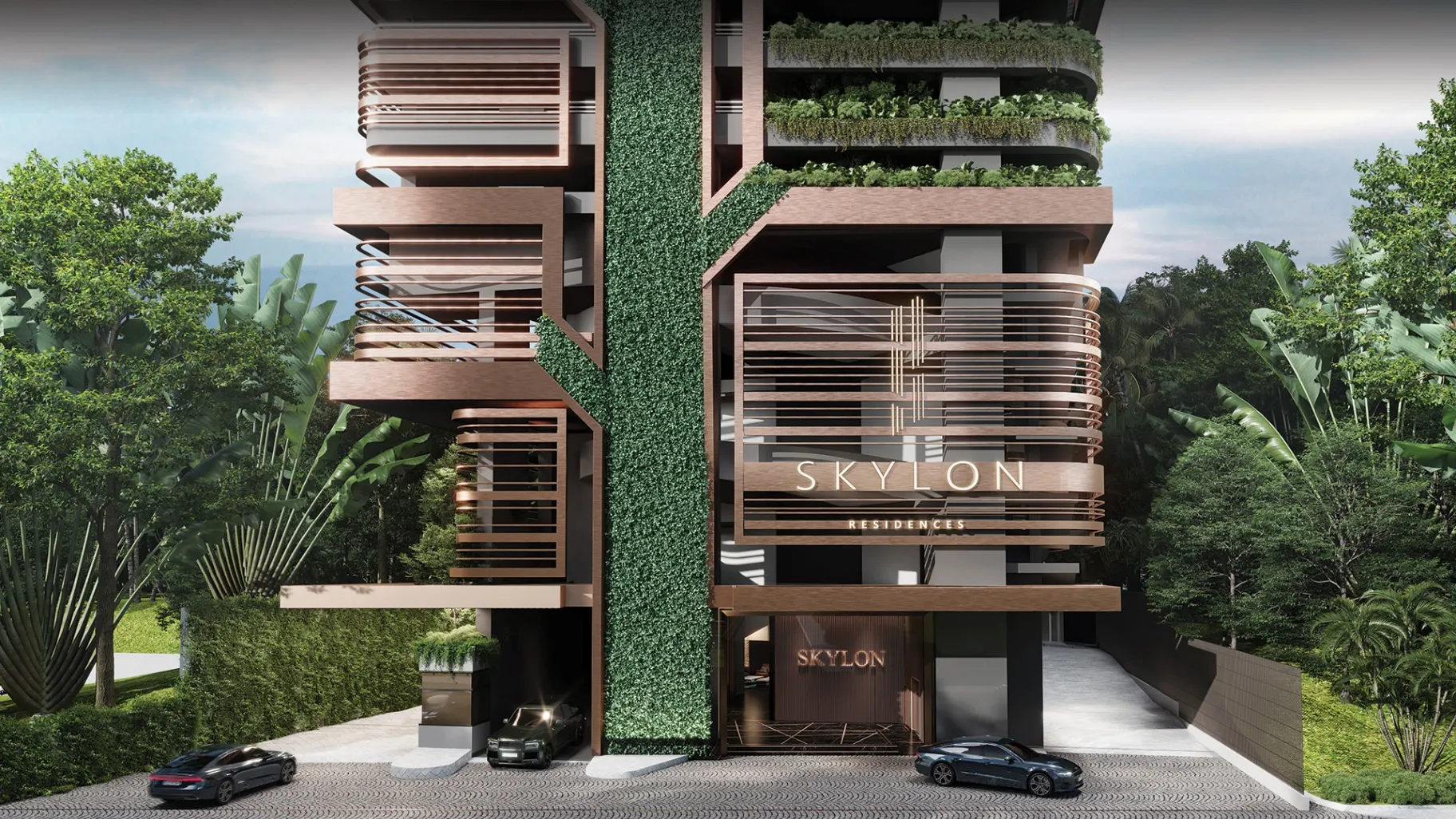 • Eco‑luxury concept: Award‑winning urban living concept with large vertical green wall, sky‑level amenities and nature‑inspired design.